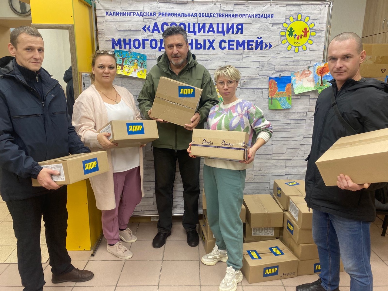 Помощник депутата ЛДПР регионального Заксобрания Андрей Желенков, координатор Московского района Калининграда Александр Нестеров и представители «молодёжки» навестили ассоциацию многодетных семей Калининграда не с пустыми руками. Партийцы передали организации несколько ящиков с печеньем от регионального отделения ЛДПР.