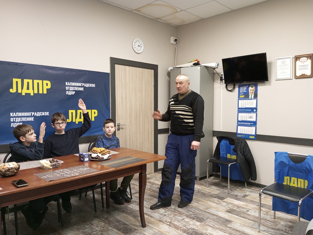 В Калининграде на улице Мариупольская доверенное лицо председателя Леонида Слуцкого от ЛДПР Владимир Мигуленко и помощник депутата регионального Заксобрания Дарья Паладич организовали мероприятие для школьников.
