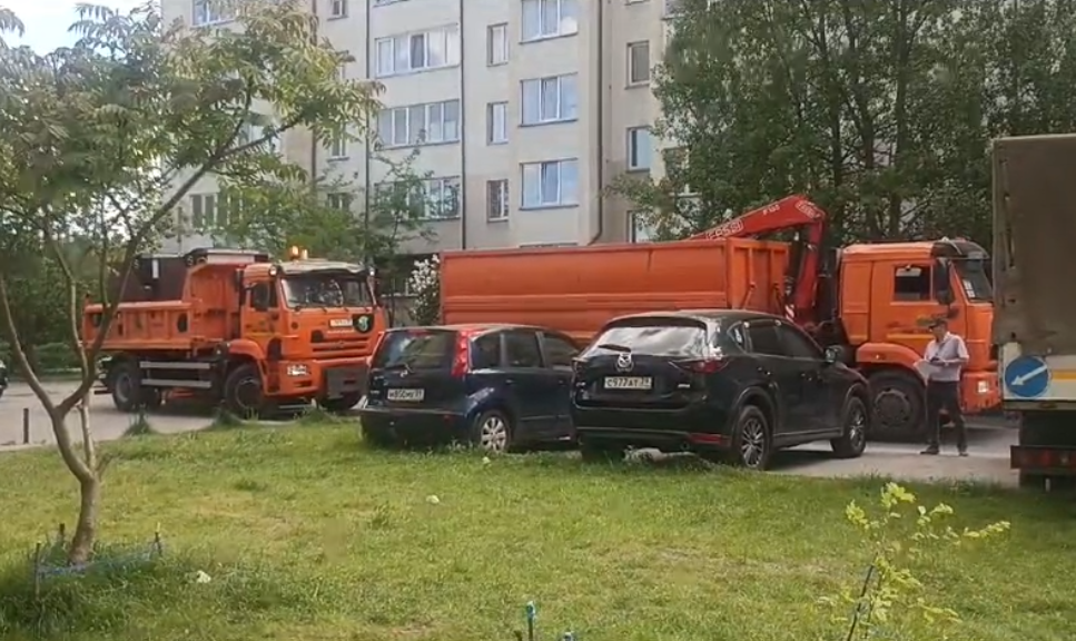 Сегодня в Калининграде на улицу Виктора Гакуна, 9 приехали грузовые машины с кесками и эвакуатор. Как выяснилось, по распоряжению начальника управления благоустройства администрации областного центра, без оповещения жильцов, у дома №9 должны были установить мусорные баки под ТБО, а машины жильцов со стоянки эвакуировать.
