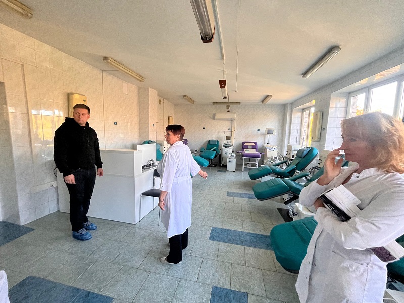 Депутат ЛДПР Заксобрания Калининградской области Евгений Мишин посетил станцию переливания крови, где его встретила руководитель учреждения Нина Кабанчук. В ходе экскурсии она продемонстрировала парламентарию помещения станции и рассказала о важной работе, которую выполняет учреждение.