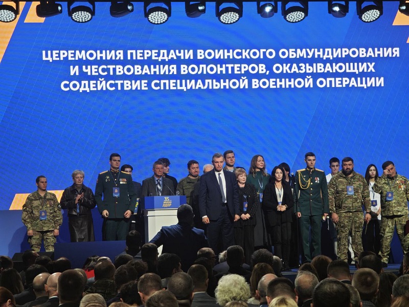 Сегодня, 13 декабря, на площадке юбилейной выставки ЛДПР, посвященной 35-летию со дня основания партии, проходит внеочередной съезд партии. Начало официальной части дала церемония чествования волонтеров, оказывающих содействие специальной военной операции.