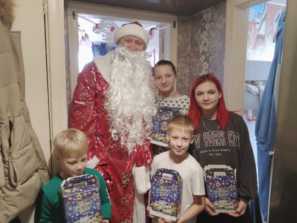 Координатор Багратионовского района Дмитрий Кошилев, переодевшись Дедом Морозом, стучится в дома многодетных семей и семей с детьми. За плечами у него – мешок с подарками.