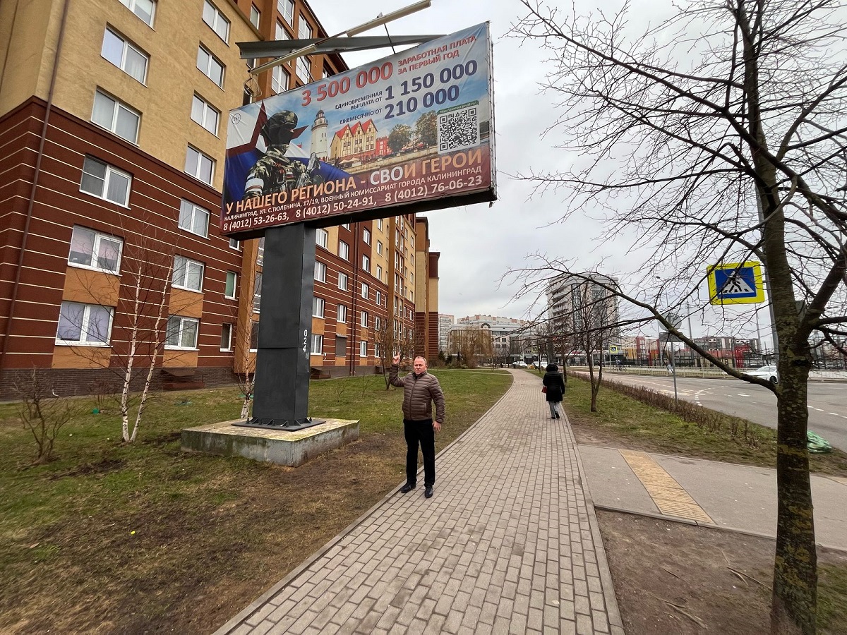 Помощник депутата ЛДПР Законодательного собрания Михаил Черноусько сегодня днем, проходя по ул. Артиллерийская у дома №65, обратил внимание на оторванный элемент конструкции рекламного щита.