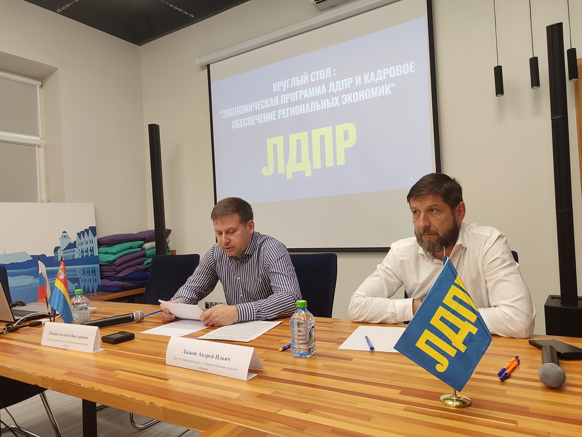 Депутаты фракции Заксобрания Калининградской области Евгений Мишин и Андрей Лыжов сегодня провели круглый стол в конференц-зале медиагруппы «Западная пресса». Темой обсуждения стали экономическая программа ЛДПР и кадровое обеспечение регионального бизнеса. В мероприятии приняли участие представители малого и среднего предпринимательства (МСП).