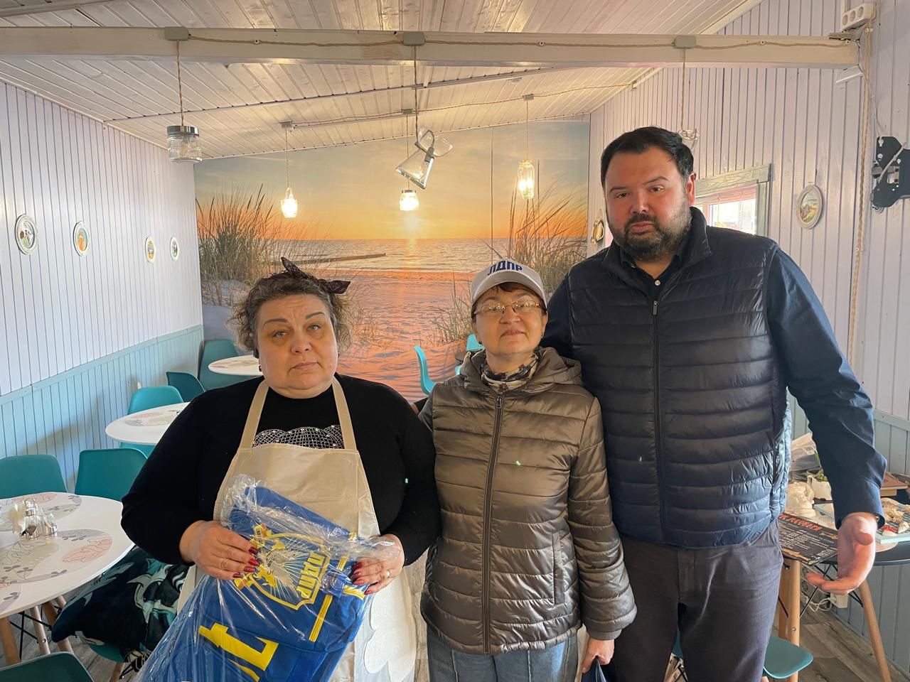 Координатор Зеленоградского округа Виктория Ловдина и депутат Яков Агатов познакомили 1-го замкоординатора Калининградского регионального отделения ЛДПР Семена Курбатова с Еленой Черванюк, владелицей кафе в поселке Лесном в нацпарке Куршская коса.