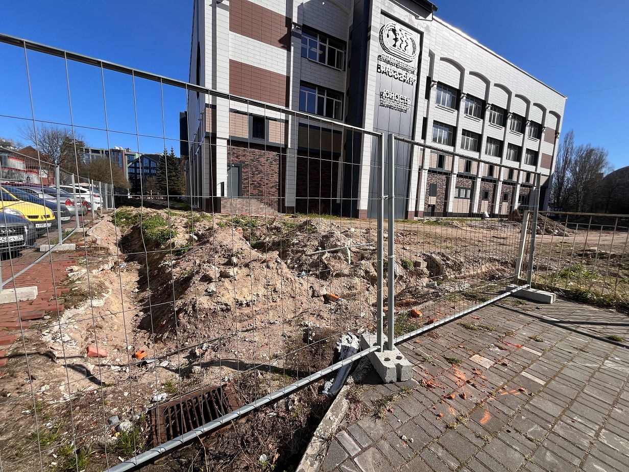 В Калининграде благоустройство территории у Дворца спорта «Юность» было обещано завершить к концу 2024 года. Однако, площадь вокруг спорткомплекса по-прежнему выглядит запущенной: она вся ископана, и пройти по ней затруднительно.