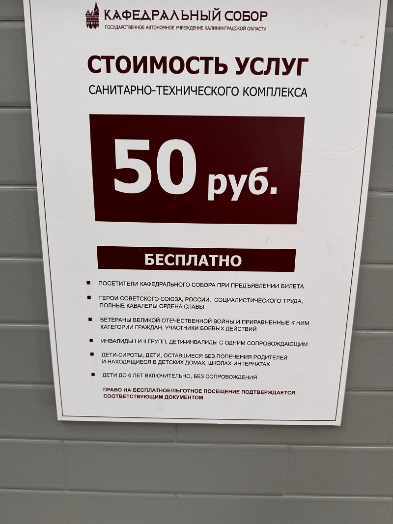 Координатор ЛДПР Центрального района Михаил Черноусько выразил недовольство по поводу платы за посещение туалета на острове Канта в Калининграде. В День защиты детей его 3-летний сын попросился в туалет рядом с Кафедральным собором, но при входе ему сообщили, что сопровождающий должен заплатить 50 рублей. Эта сумма кажется значительной, особенно учитывая, что туалет не предназначен для малышей.