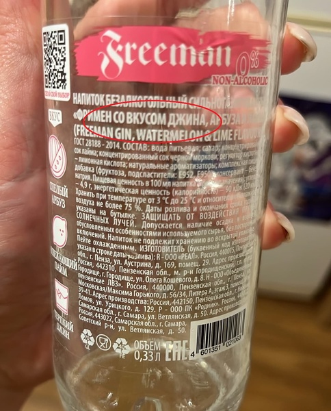 8-летний калининградец принес домой лимонад, который ему продали в магазине, и этикетка которого вызвала у его мамы бурную реакцию. На этикетке написано: «напиток безалкогольный <…> со вкусом джина».