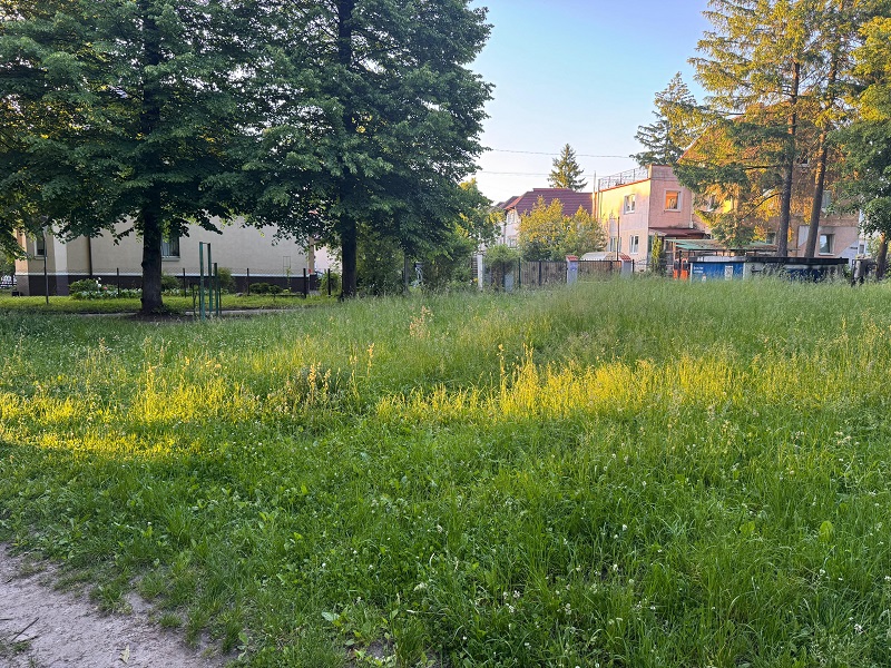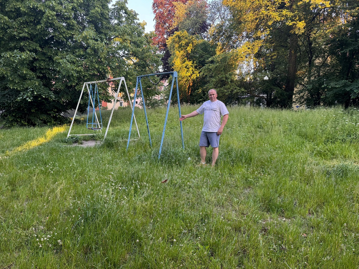 На месте он обнаружил, что трава на так называемой детской площадке никогда не косится, качели находятся в неисправном состоянии, а футбольные ворота существуют только номинально. Несмотря на то, что место и возможности позволяют организовать полноценное место для детского отдыха, ситуация оставляет желать лучшего.