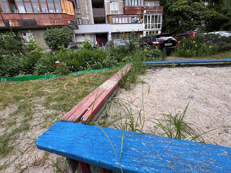 На детской площадке сохранились устаревшие и частично сломанные игровые конструкции, представляющие реальную опасность для детей. Отсутствует безопасное покрытие под качелями и горками, а в вечернее время площадка погружается в темноту из-за неработающего освещения. Прилегающая территория также вызывает нарекания – высокая трава не скашивается, хотя жители неоднократно обращались в управляющую компанию с этим вопросом.