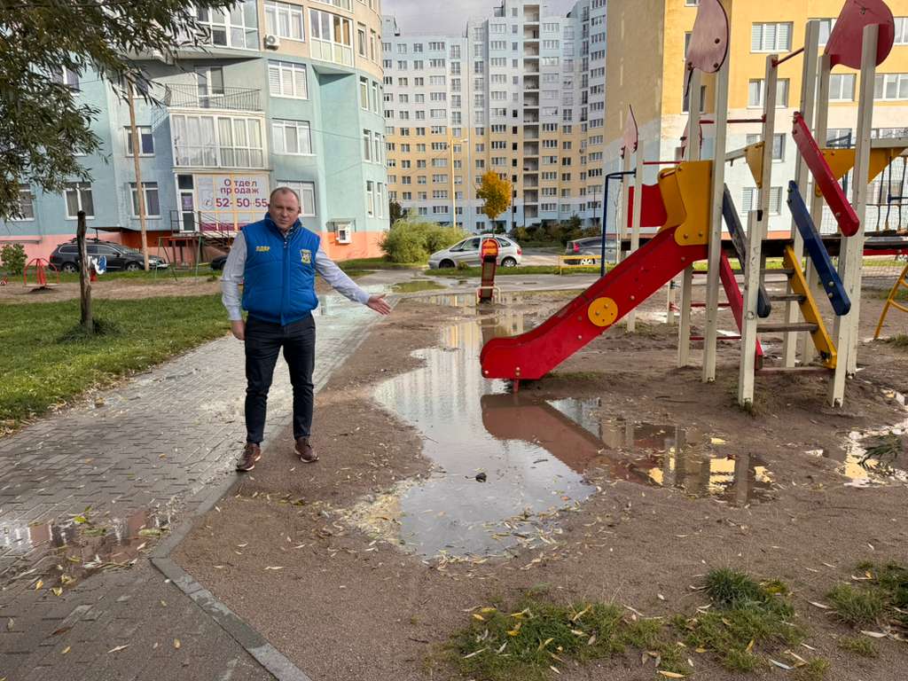 Жители домов 30б, 32б и 32а по улице Орудийной в Калининграде обратились к помощнику депутата ЛДПР Законодательного собрания Калининградской области Михаилу Черноусько с наболевшей проблемой. Горожане жалуются на неудовлетворительное состояние дворовой инфраструктуры: после небольших дождей во дворе подолгу стоят лужи, из‑за чего дети не могут пользоваться качелями и горками. Кроме того, скамейки во дворе не окрашены, а на спортивной площадке повреждены оградительные сети.