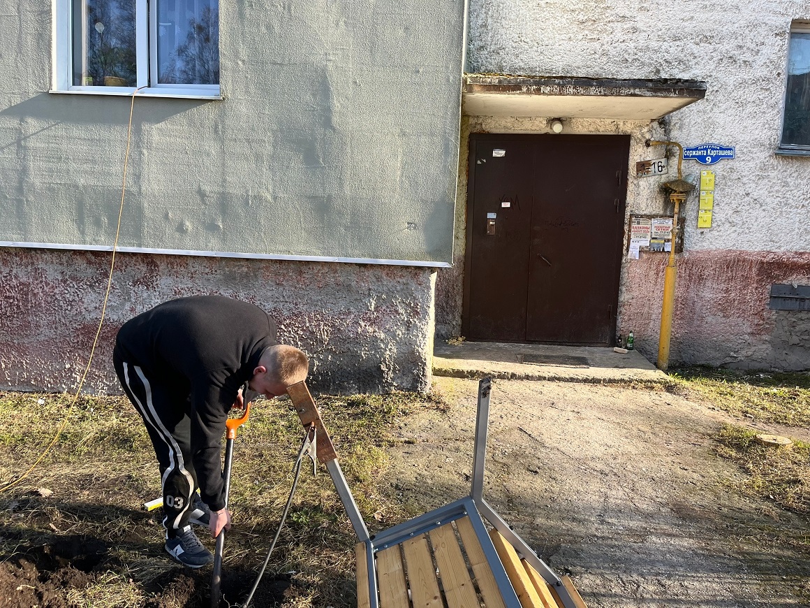Помощник депутата решил проблему за свой счёт: приобрёл и установил удобную скамейку прямо перед домом семьи. В установке конструкции помог сосед Артём, который оперативно поддержал инициативу.