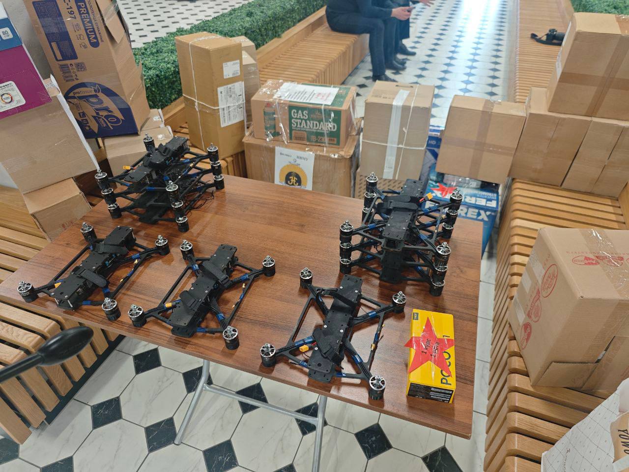 Ключевая часть груза — беспилотные летательные аппараты, необходимые нашим бойцам на передовой. Дроны были закуплены на средства, выделенные лидером партии Леонидом Слуцким.