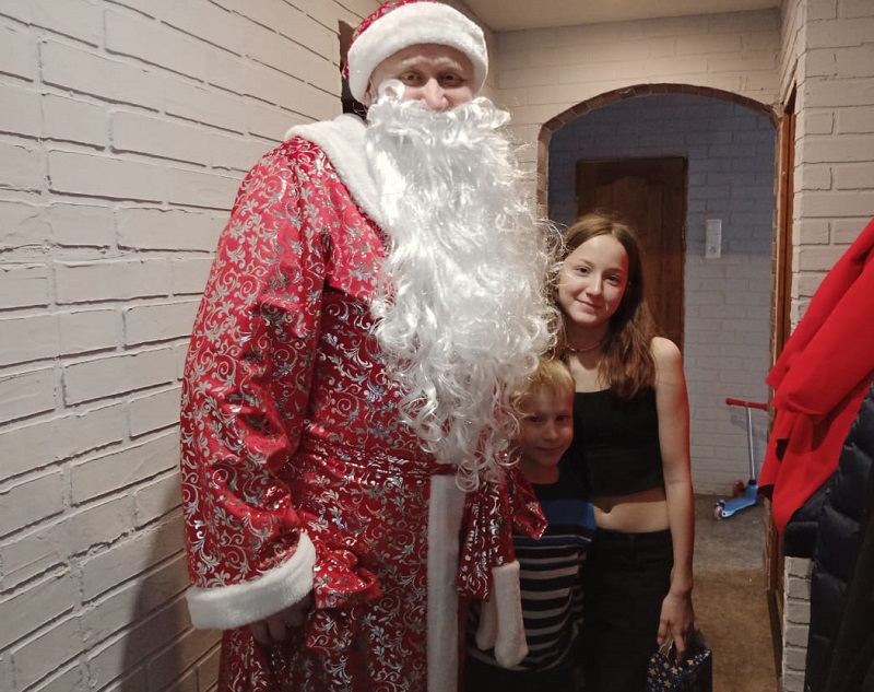 Координатор Багратионовского района Дмитрий Кошилев, переодевшись Дедом Морозом, стучится в дома многодетных семей и семей с детьми. За плечами у него – мешок с подарками.
